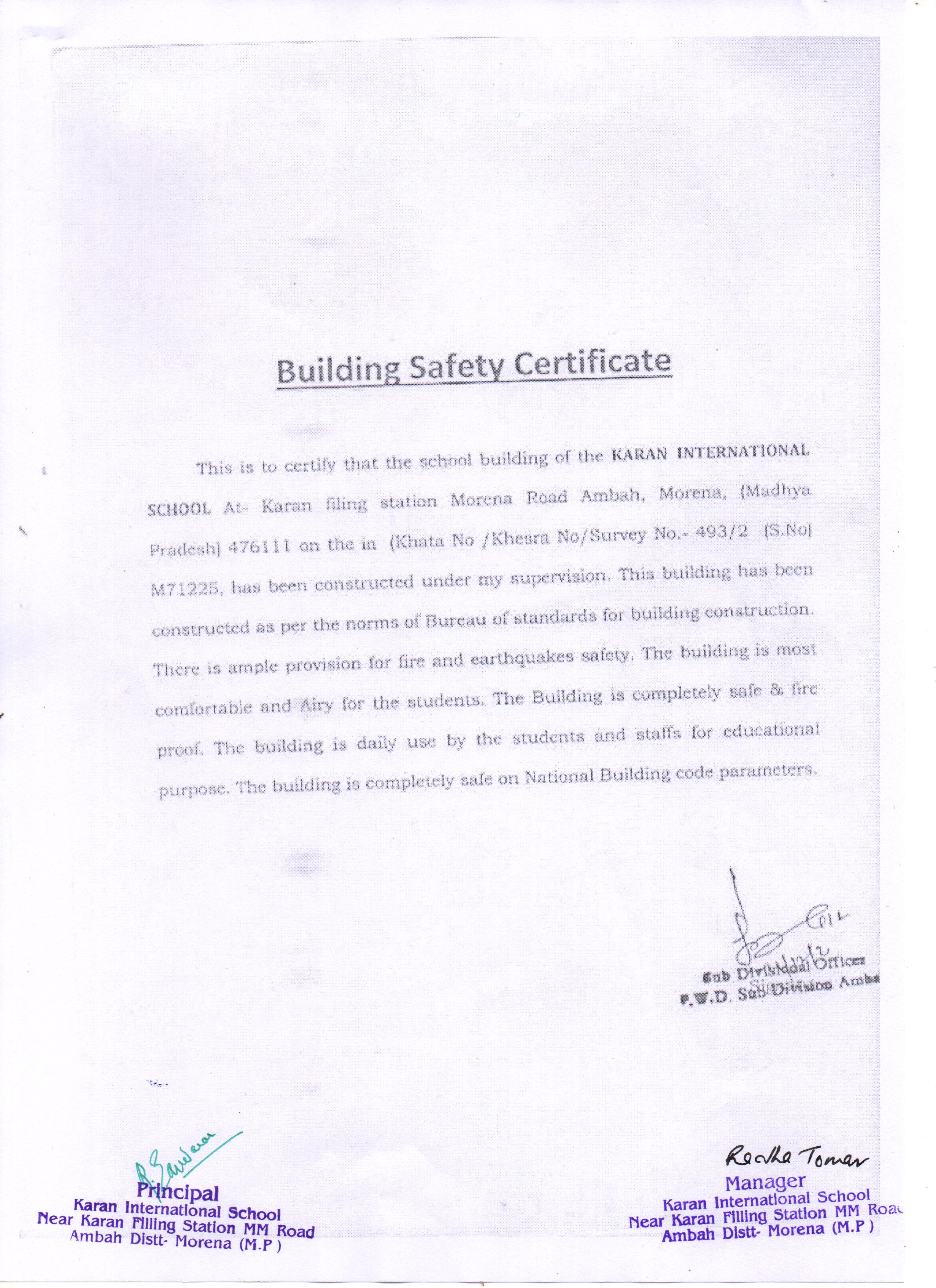 | 5 . | COPY OF VALID BUILDING SAFETY CERTIFICATE AS PER THE NATIONAL BUILDING CODE | VIEW DOCUMENTS |